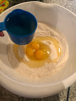 3. Add beaten eggs and oil. Stir just until dry ingredients are moistened.